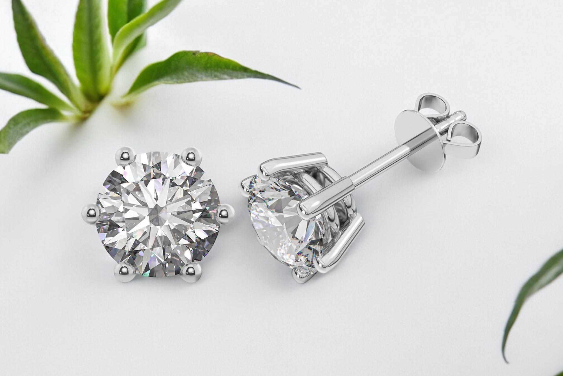 鑲嵌: 18K白金清鑲六爪耳環連蝴蝶耳迫(可選三爪/四爪)