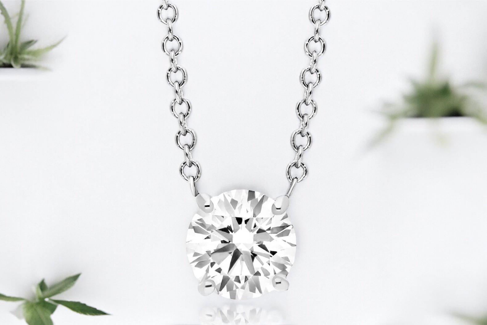 鑲嵌: 18K白金清鑲四爪頸鏈 (頸鏈長度可調較: 16/18吋)(可選四爪或六爪)