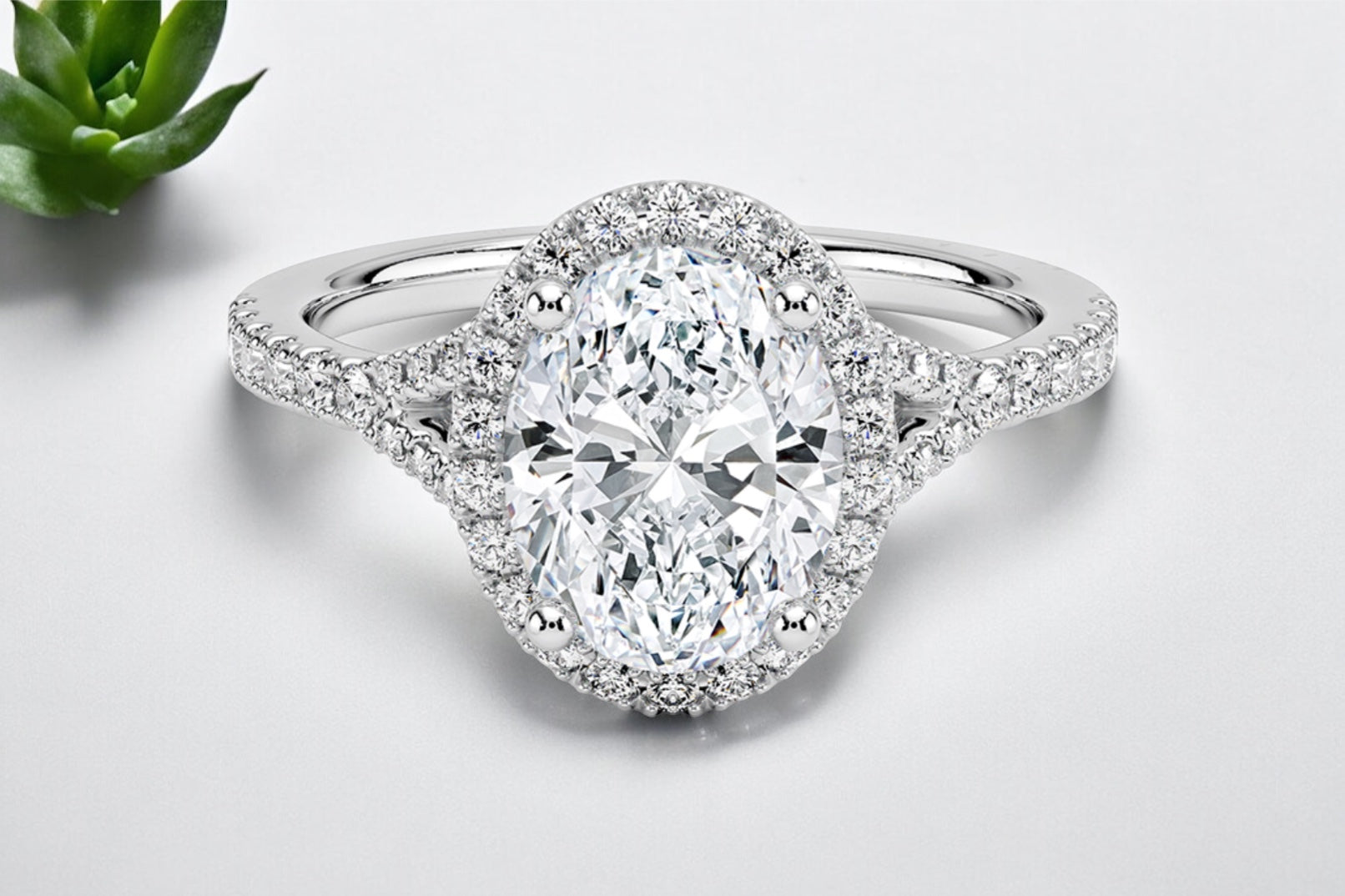主石: 2ct 橢圓型 D色 VS+ Ideal 2Ex