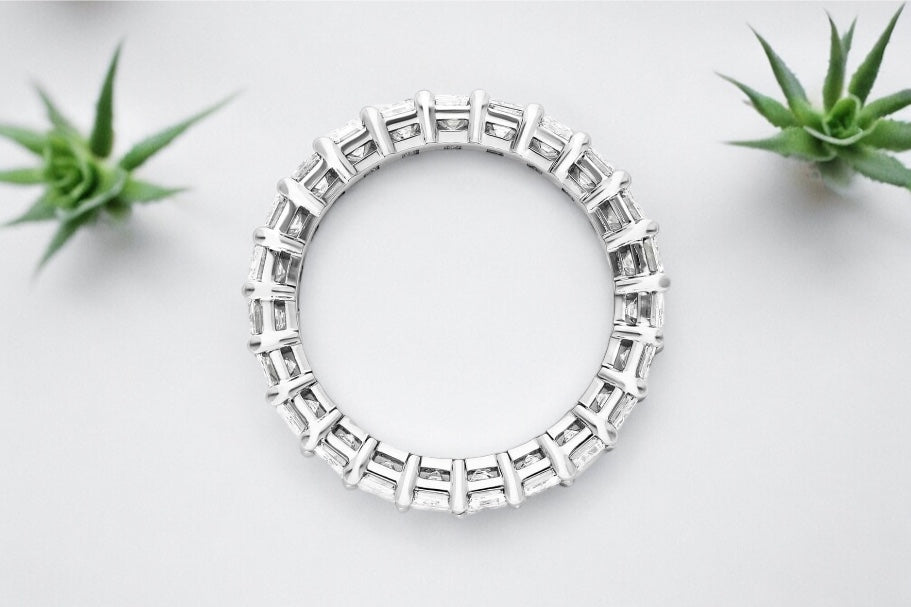 鑲嵌: 18K白金鑽石全圈排戒,手指尺寸: hk 14